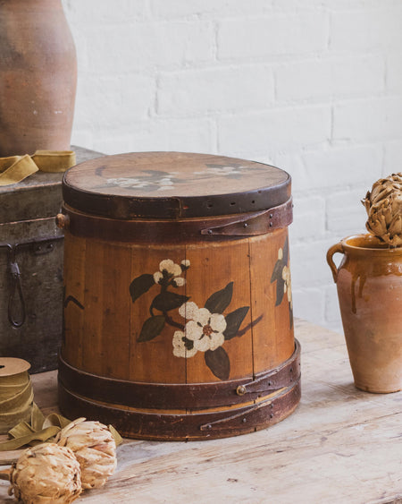 Antique Early 20th Century Folk Art Decorated Firkin Barrel / Pail / Bucket with Lid by William Whiteley, London £125.00