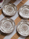 A set of 4 ironstone side plates by the English Ironstone Tableware Limited. Brown and whuge in the “Kew Garden” design.