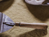 The handle shows a split - a sign of use and love - but remains sturdy with plenty of life left to give. Perfect for those who appreciate the patina of time and the beauty of pieces that have served and endured.