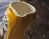 Stunning yellow Art Deco style beaked jug from the 1920's with a 2D tree and deer design slightly recessed on both sides. An airbrush technique was used (Spritzdecor) which was innovative at the time.