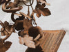 Vintage French Rose Bush Candlestick Holder Candelabra Rusted Metal & White Porcelain Flowers
