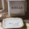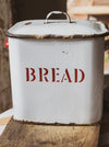 Bring a touch of classic English farmhouse style to your kitchen with this authentic vintage enamel bread bin, likely dating to the 1930's.  Featuring its original white enamel finish and unusual red "BREAD" lettering, this bin is a wonderful piece of kitchenalia with plenty of character.  The side handles are also red enamel as is the top rim of the base.