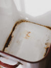 Condition: This piece has seen decades of use and bears the charming signs of age.  The rim of the lid and interior base show areas of rust and there is light visible through the base, indicating a small hole or thinning of the metal - we recommend using an inner bread bag for practical storage.  The enamel is timeworn with chips and marks consistent with age and use, adding to its vintage appeal.