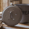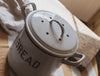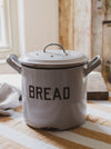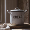 Bring a touch of classic English farmhouse style to your kitchen with this authentic vintage round enamel bread bin, likely dating to the 1930's. Featuring its original white enamel finish and black "BREAD" lettering, this bin is a wonderful piece of kitchenalia with plenty of character. The top has six ventilation holes to help maintain a balanced level of humidity inside the bin, keeping the bread fresh for a longer.