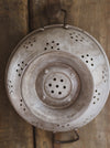 Bring timeless utility and rustic charm into your kitchen with this beautiful vintage metal colander.  Once a hardworking staple of the home, it now makes a wonderful decorative accent as well as a functional piece.  Its aged patina, perforated design and sturdy handles tell the story of decades gone by, making it a perfect addition for those who appreciate the character of well-loved objects.